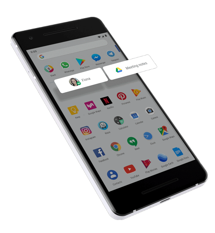 经过一年多的努力, Android 9 迎来了全新的系统导航,让多任务切换及关联应用探索变得更加简单。您只需要向上滑动屏幕就可以全屏预览最近使用过的应用,轻触预览页后便可以切换至所选应用。
