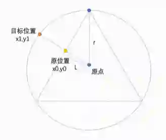 通过上图可知:(原位置与原点的距离:L)/(三角形顶点到原点的距离:r)获得一个比例系数;然后用其当前坐标x0,y0分别除以该系数即可。