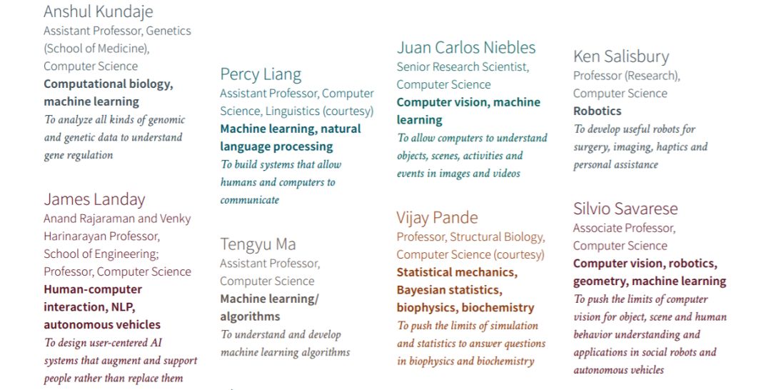 俗话说新官上任三把火,虽说李飞飞对斯坦福来说不是什么「新官」,但毕竟离开斯坦福已有两年之久。因此,10 月,即李飞飞重返斯坦福之后的第二个月,她就烧起了自己的第一把火——开启「以人为中心的 AI 计划」,并担任联合负责人。该项目来势汹汹,阵容强大,目前成员包括:斯坦福大学政治学教授 Rob Reich、斯坦福大学生物医学信息学和生物医学信息科学副教授 Nigam Shah、斯坦福大学历史系 John L. Hinds 教授 Londa Schiebinger、斯坦福大学计算机科学和语言学系教授 Chris Manning 和斯坦福大学心血管医学、遗传学和生物医学数据科学教授 Euan A. Ashley。