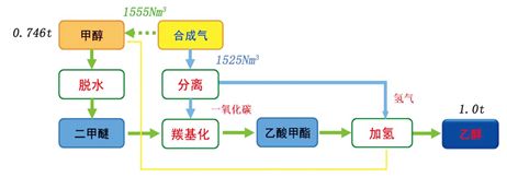 DMTE的技术路线如上图所示,主要通过甲醇脱水制二甲醚,二甲醚与一氧化碳发生化学反应生成乙酸甲酯,乙酸甲酯与氢气发生化学反应生成乙醇产品。值得一提的是,二甲醚与一氧化碳反应生成乙酸甲酯是该技术全球领先的核心所在。