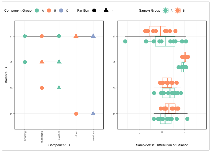 1. balance: 提供用于平衡可视化(用于成分数据分析)的替代方案,以及用于主平衡分析的方法,如Quinn(2018)中所描述.