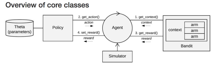 2. contextual: 支持模拟和评估与无上下文和上下文多臂强盗策略、算法,以简化现有和新的多臂强盗算法和策略的实现、评估和传播.