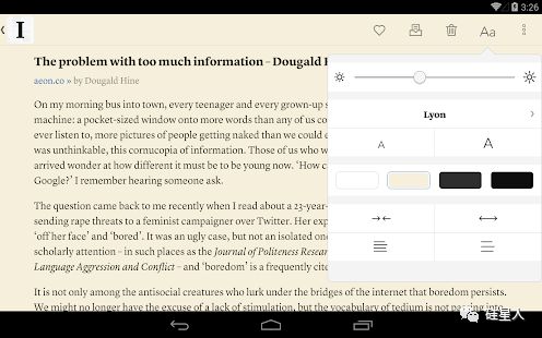 这个版本只保留有用的内容,而且可选配色、字体和字号,版式护眼,利于阅读。因为以上,Instapaper 成为了很多人阅读资讯的首选。