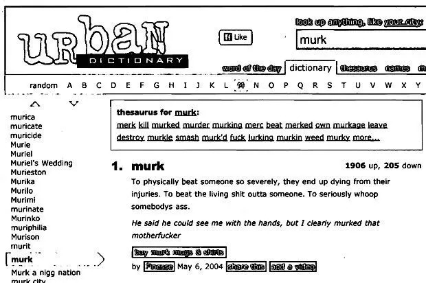 2011年,美国有个人拿了一支磨掉了序列号的枪造访枪店,结果被没收。这个蠢货跑到 Facebook 上威胁店主,宣称要“murk”他。店主报案,联邦特工发现这个俚语有着生命威胁的意思,果断起诉并将嫌疑人逮捕。