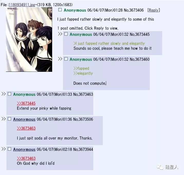 如果你进错了版,就不要怪别人很黄很暴力了。一个典型的 4chan 帖子截图: