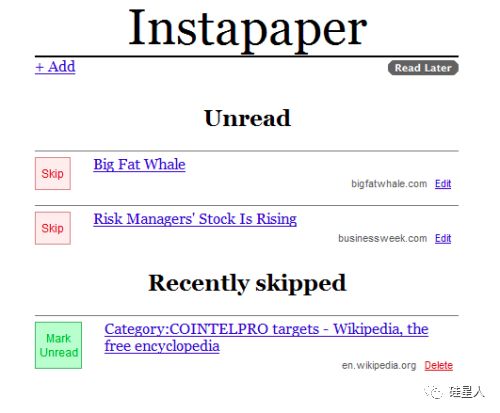 Instapaper 的最主要功能是保存一个网页上的全部内容,然后呈现给用户一个离线的,版式统一并去除掉多余的视觉效果、广告和非正文内容的版本。