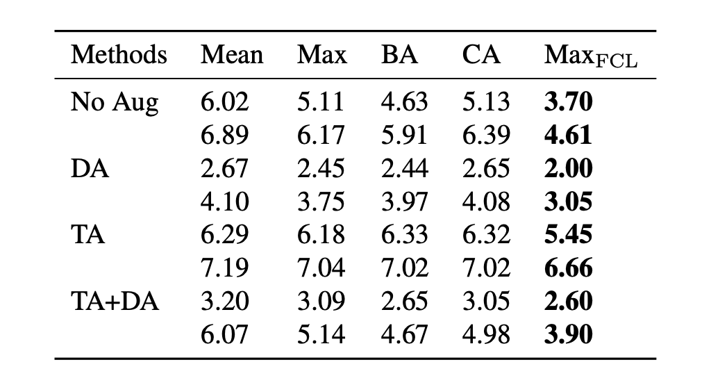 2. DA 缓解了这两种类型的过拟合,而 TA 缓解了记忆过拟合,但需要针对每个任务单独设计,需保证增加的搜索空间是对原任务有效的。