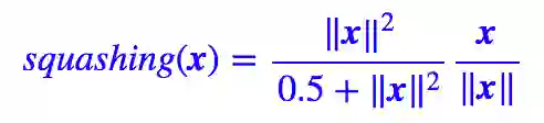 因为已经有了后面说的动态路由在里边,因此即使去掉 squashing 函数,网络也已经具有了非线性了,因此直觉上并没有必要在中间层也引入特征压缩,正如普通神经网络也不一定要用 sigmoid 函数压缩到 0-1。我觉得这个要在实践中好好检验一下。