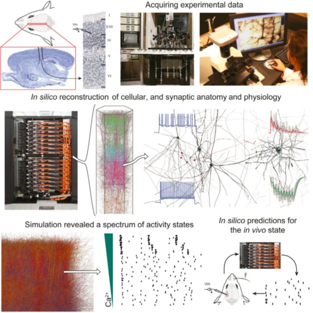 马克拉姆认为,如果按照常规办法,在各种条件下对各物种的各个年龄段,并在健康的和各种疾病的条件下,逐个测量脑里面的每个基因、蛋白质、细胞、突触与回路,那么即使再过一个世纪或者更长时期,也还是解决不了问题。为克服这一困难,必须把全世界所有已知的和新研究出来的数据都整合在一起。这样就必须研发全新的信息和计算技术 —— 包括超级计算机 —— 借以把这些数据整合在统一的计算机模型之中,并对脑进行仿真。