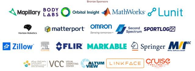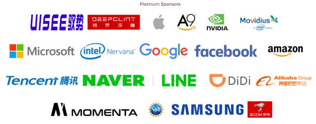 其中,大会白金赞助商有谷歌、微软、Facebook、亚马逊、苹果、英特尔、英伟达,也有中国的腾讯、阿里巴巴、京东、滴滴和驭势、格灵深瞳以及 Momenta。