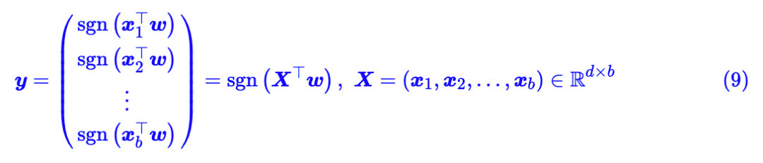 此外,值得提出的是,不管是(6)还是(8)其实都跟各 的模长没关系,因为 sgn(x)=sgn(|λ|x)。前面那个引理之所以要求在“单位超球面”上采样,只是为了强调采样方向(而不是模长)的均匀性。