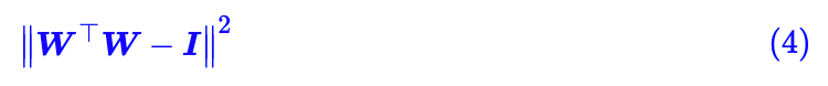 当然,一般来说我们也不是非得要严格的正交,所以通常的矩阵正交化的手段其实是添加正交化相关的正则项,比如对于正交矩阵来说我们有 ,所以我们可以添加正则项: