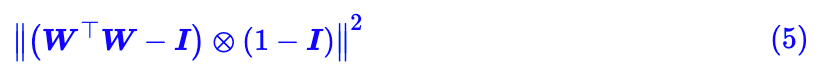 这里的范数 ||⋅|| 可以用矩阵 2 范数或矩阵 F 范数(关于矩阵范数的概念,可以参考深度学习中的Lipschitz约束:泛化与生成模型)。此外,上面这个正则项已经不仅是希望正交化了,而且同时还希望归一化(每个向量的模长为 1),如果只需要正交化,则可以把对角线部分给 mask 掉,即: