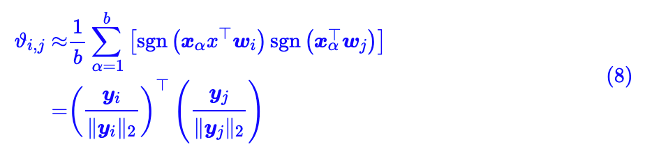 这个引理是关于余弦相似度的“局部敏感哈希”的直接推论,而局部敏感哈希(Locality Sensitive Hashing)则源自论文 Similarity Estimation Techniques from Rounding Algorithms,如果要追溯证明的话,可以沿着这条路线走。