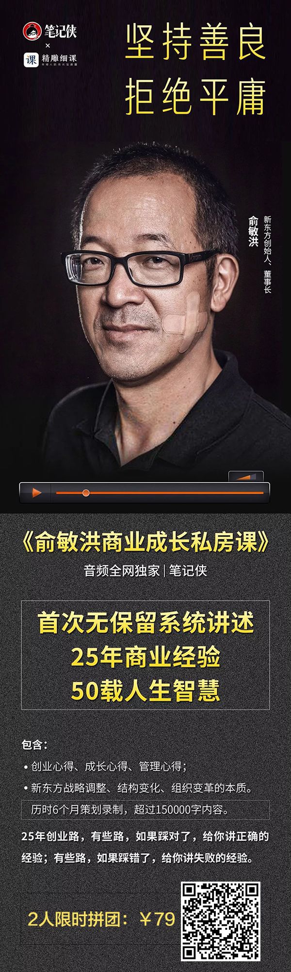 跟俞敏洪老师当年审核把关新东方老师的情形类似,在他的亲自把关审核下,我们为各位关注笔记侠的学友,精心打造出了这门“俞敏洪·商业成长私房课”。