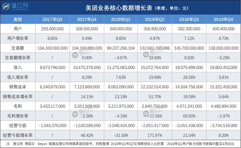 王兴的压力还是有的。美团的业务压力来自两方面,一个是资本市场对盈利的期望,一个是业务自身增长的压力。美团遇到了什么问题?我们来看美团的财报数据变化。