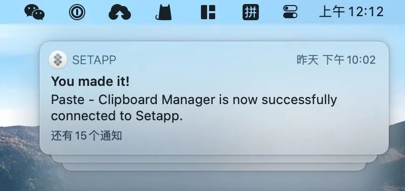 iOS 端应用解锁完成后,macOS 端会弹窗通知提醒,iOS 应用内也能查看到通过 Setapp 订阅的说明。