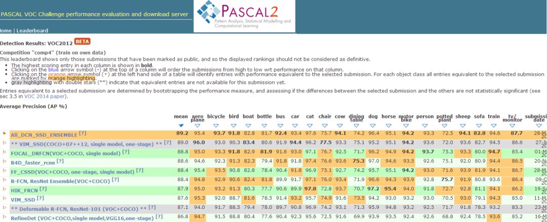 阿里巴巴达摩院多模型融合网络Ali_DCN_SSD_ENSEMBLE的得分是89.2,只比中星微单模型网络高了0.2点,而阿里巴巴达摩院FF_CSSD(VOC+COCO, one-stage, single model)一步法单模型的精度是88.4,基础网络是ResNet101,和中星微差了0.6个点。