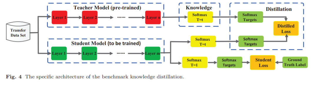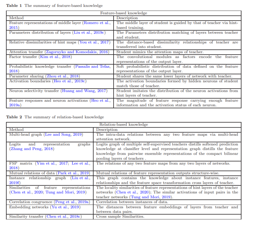 知识蒸馏(KD): 这些方法通常将知识从一个较大的深度神经网络提取到一个较小的网络中(Hinton et al., 2015)。