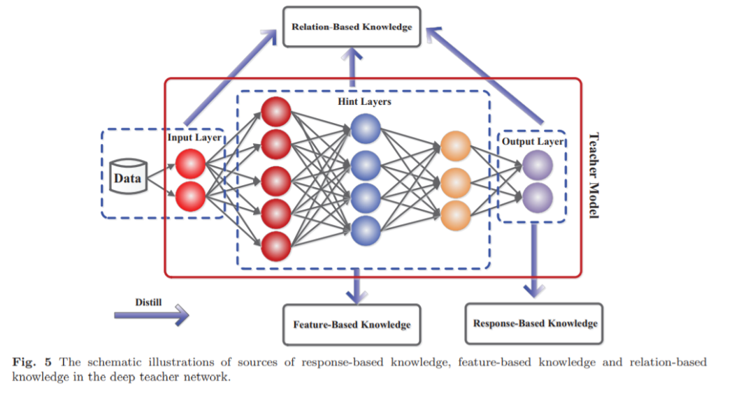 模型压缩的知识蒸馏思想与人类的学习方案非常相似。为此,近年来的知识蒸馏方法不仅扩展到了师生学习(Hinton et al., 2015),还扩展到了相互学习(Zhang et al., 2018b)、自学(Yuan et al., 2019)、辅助教学(Mirzadeh et al., 2019)和终身学习(Zhai et al., 2019)。知识蒸馏的大部分扩展集中于压缩深度神经网络,因此轻量级的学生网络可以很容易地部署在诸如视觉识别、语音识别和自然语言处理(NLP)等应用程序中。此外,知识蒸馏中从一个模型到另一个模型的知识转移符号也可以扩展到其他任务,如对抗攻击(Papernot et al., 2016b)、数据增强(Lee et al., 2019a;Gordon和Duh, 2019),数据隐私和安全(Wang等,2019a)。