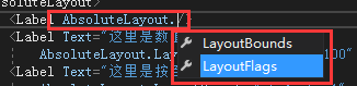 我们如果在AbsoluteLayout中添加控件,会发现,所有的控件,都会多出一个命名空间,下面有2个属性,如下: