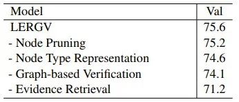 实验结果如表1所示,LERGV为我们的模型,其中,Baseline系统分别为:Table-BERT[1]、LPA[1]、LogicalFactChecker[2]、HeterTFV[3]、SAT[4]、ProgVGAT[5]。