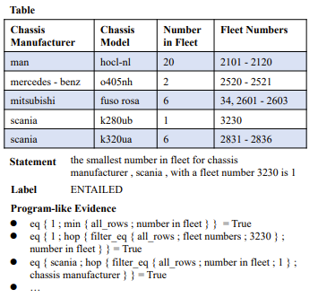 通过对表格中包含的信息进行聚合、分解和过滤,我们可以使用这些包含逻辑运算的逻辑表达式来作为表格的补充证据来加强对表格数据的理解。