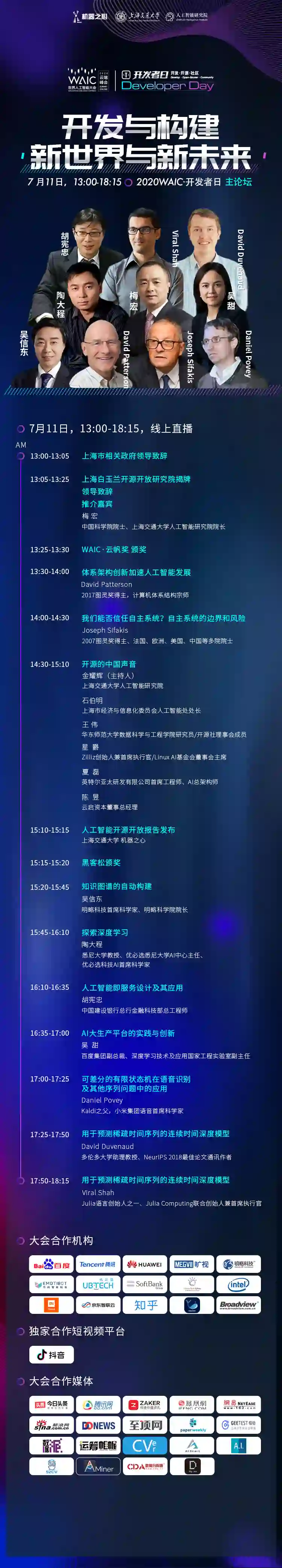 7月11日,2020 WAIC·开发者日如期而至,这国内质量最高、最大规模的人工智能技术论坛,现邀请100位观众来现场参会。