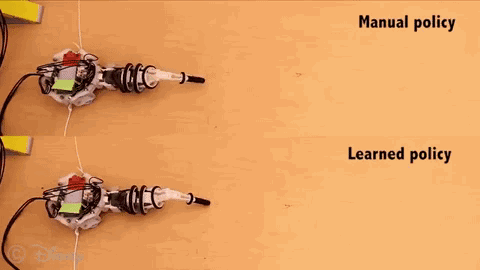 而今天这个实验就是研究人员将生物的这种学习运动的技巧应用到了这个机器人身上~