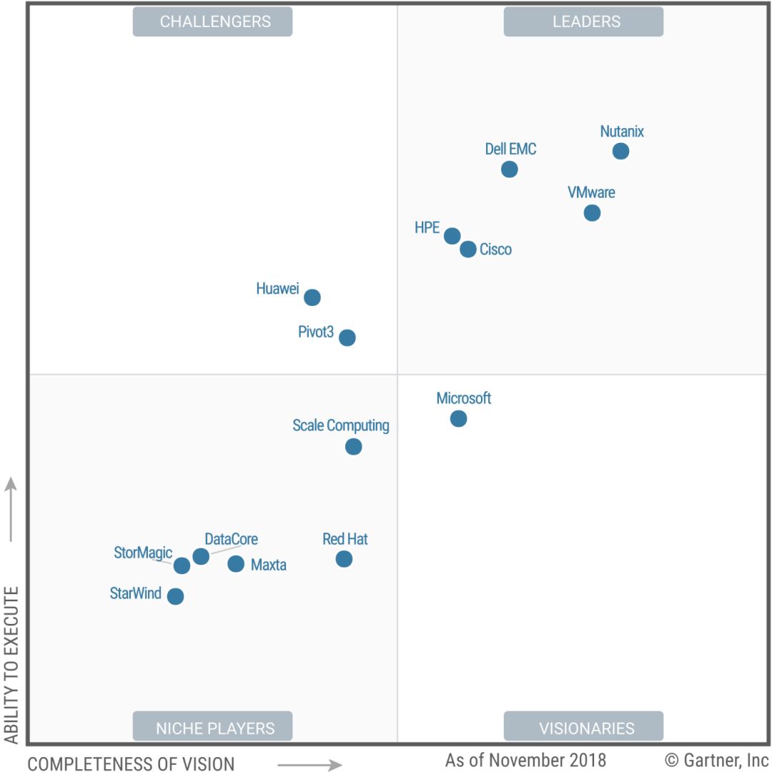 超融合基础架构魔力象限,资料来源:Gartner(2018年11月)