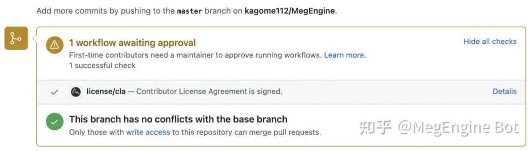 注意:对于首次在 MegEngine 项目中提交的 Pull Request,提交后需要根据 cla-bot评论完成 CLA 协议签署: