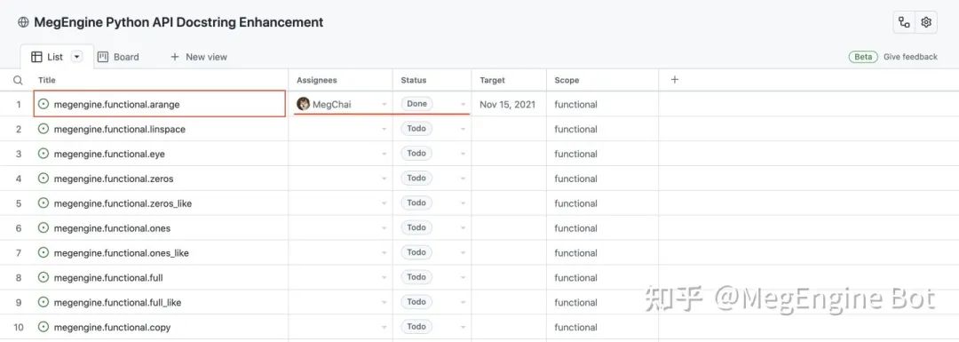 MegEngine 社区整理了适合新手的简单任务 - 完善 MegEngine API Docstring