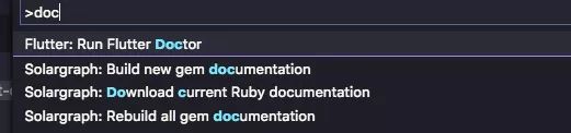 快捷键 shift + command + p 输入 ‘doctor’, 然后选择 ‘Flutter: Run Flutter Doctor’ 验证操作