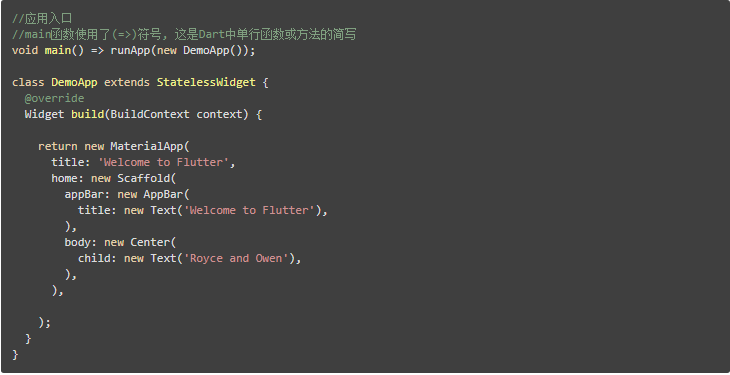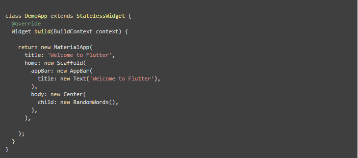 替换 lib/main.dart. 删除lib / main.dart中的所有代码,然后替换为下面的代码,它将在屏幕的中心显示“Hello World”