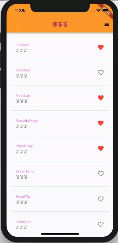 同时在 _buildRow()中, 添加一个心形 ❤️ 图标到 ListTiles以启用收藏功能