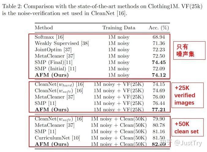 作者在Food101N(标签准确度为80%)和Clothing1M(标签准确度为61.54%)进行训练,得到的结果增强了。(注:Clothing1M在只有噪声集下训练结果虽然不是最优,但是模型复杂度和计算复杂度比SMP(Final)低)