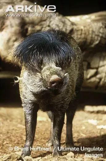 这种猪的体重大约为100公斤,生命中的大量时间都花费在填饱肚子上。在觅食过程中,尖利的犬齿是它们主要的挖掘工具。