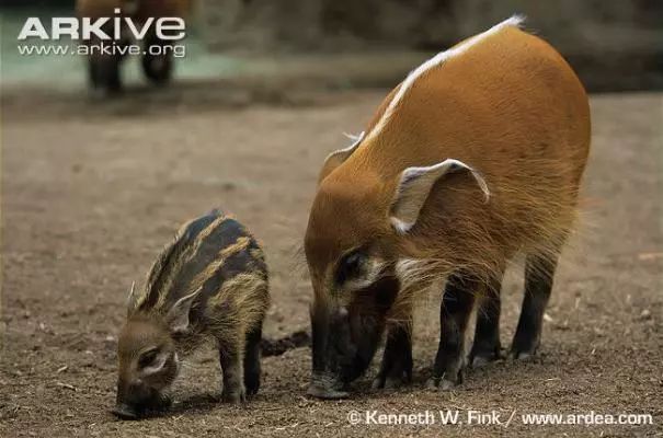 白天,红河猪在森林深处的巢穴中休息。黄昏和夜间,它们四处寻找水果、昆虫、鸟蛋、腐肉等食物充饥。