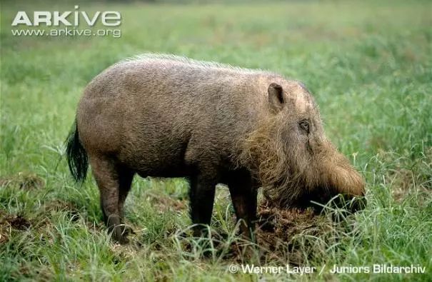 须猪(Sus barbatus)不论雌雄都是一脸“络腮胡子”,奇怪的是,它们身上的毛发却十分稀疏。