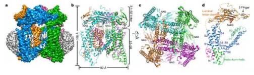 本期《自然》在线发表了两篇关于TRPML1的论文,第二篇同样来自德克萨斯大学西南医学中心,主要负责人之一是李晓春教授。李教授博士后期间的导师,洛克菲勒大学的诺贝尔生理学或医学奖得主Günter Blobel教授也是通讯作者之一。在这项研究中,研究人员公布了全长的人类TRPML1蛋白冷冻电镜结构。值得一提的是,这支团队同时获得了该通道蛋白“关闭”和“开启”时的结构。研究人员指出,这些结构揭露了TRPML通道蛋白的调控机理,有望带来治疗由TRPML1突变引起的溶酶体贮积症的新洞见。