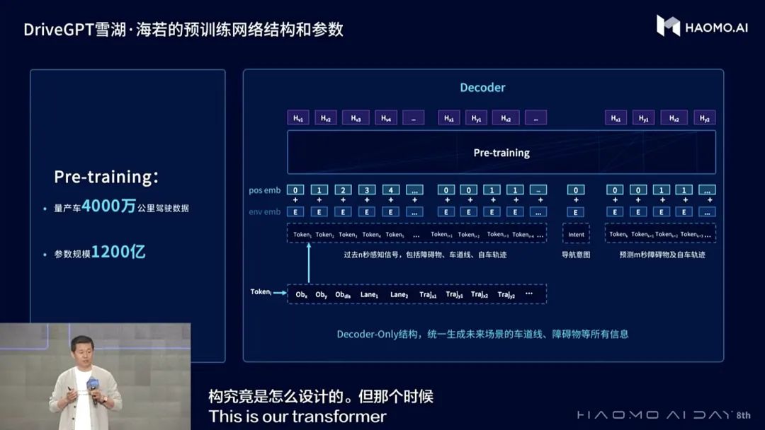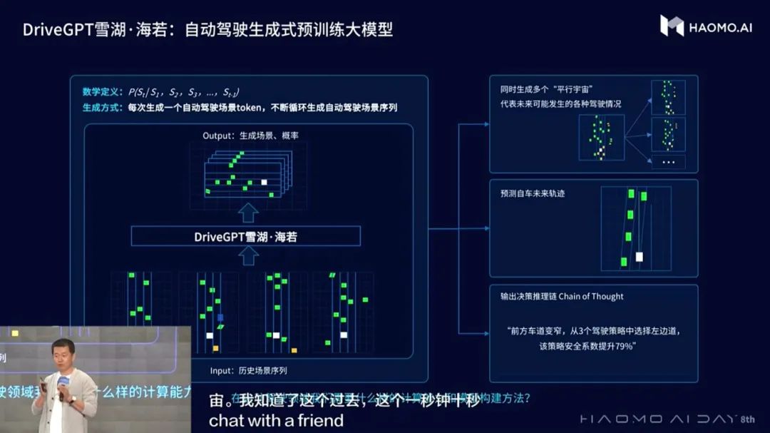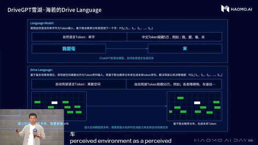 昨天(4 月 11 日),在第八届 HAOMO AI DAY 上,毫末正式对行业首发了 DriveGPT 自动驾驶生成式大模型,同时也公布了其中文名「雪湖・海若」。