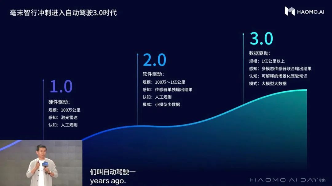 按照毫末的判断,这次 DriveGPT 雪湖・海若大模型的发布,也代表其将加速从软件驱动的 2.0 时代,跨向大模型、大数据、大算力为特点的数据驱动的自动驾驶 3.0 时代。