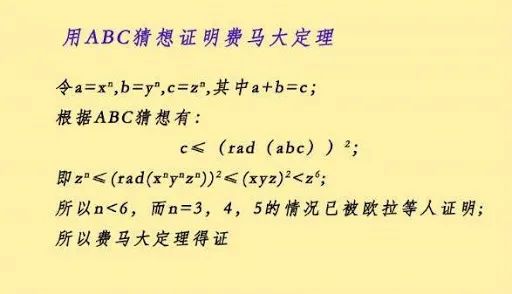 abc 猜想一经得证,数论中很多著名猜想可以立时得出。美国数学家、哥伦比亚大学教授多利安·哥德费尔德称 abc 猜想为「丢番图分析中最重要的未解问题」。