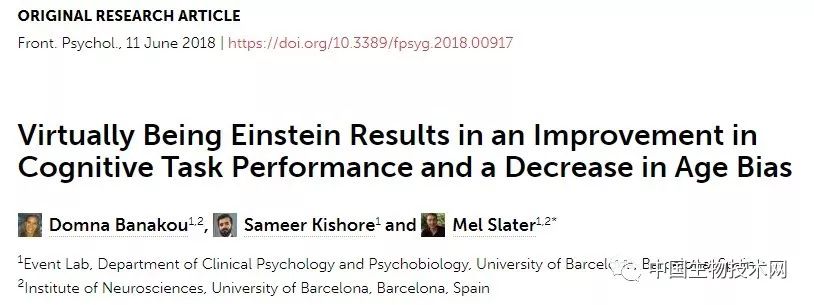值得指出的是,在VR实验结束之后的偏见测试中,那些“化身”为爱因斯坦的受试者对老年人的内隐偏见也减少了,而这种现象也没有出现在对照组中。