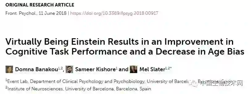 Slater说:“我们很好奇虚拟化身是否会影响认知。如果我们给予某人代表超级智力的可辨认的身体,比如爱因斯坦,那么他们在认知任务中能表现得更好吗?”