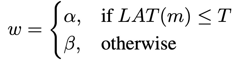 然而,这种方法只最大化了一个指标,并没有提供多个帕累托最优解决方案。如果一个模型在不增加延迟的情况下具有最高的准确性,或者在不减少准确性的情况下具有最低的延迟,那么该模型就被称为帕累托最优。作者使用定制的加权乘积法来接近帕累托最优解,其优化目标定义为:
