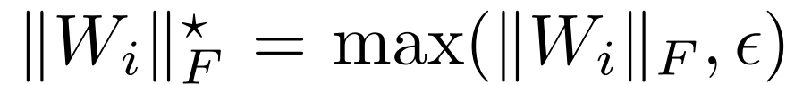 其中,W^l 是 的第 L 层的权重矩阵, G^l 代表 W^l 的梯度。AGC 关键在于:通过观察梯度 G 的范数与层权重 W 的范数之比,以判断单个梯度下降在多大程度上改变原始权重 W 。根据梯度归一与参数归一的单位长度比值来剪辑梯度,作者发现这比采取层间归一比值的经验表现更好。具体来说,在 AGC 算法中,第 l 层 (G_i)^l(定义为矩阵G^l 的第 i 行)的梯度的每个单元 i 被剪切为: