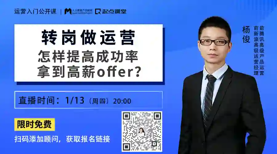 1月13日(周四)晚8点,前腾讯高级运营经理,15年资深运营大咖@杨俊老师,通过1小时直播分享,帮你解决以上问题!