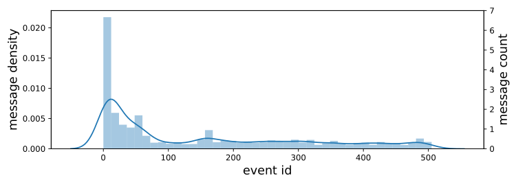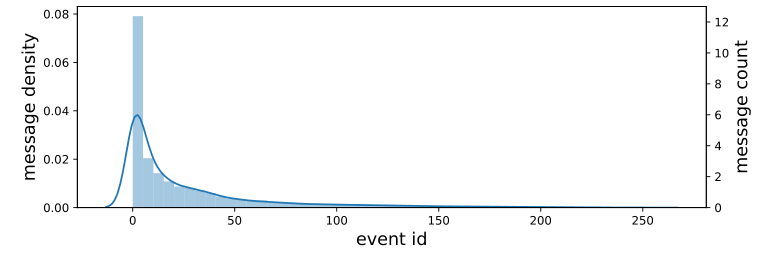 图3社会流中的长尾分布和数据不平衡挑战。曲线和条形分别表示一个事件中消息的密度和计数。消息计数的数量级为