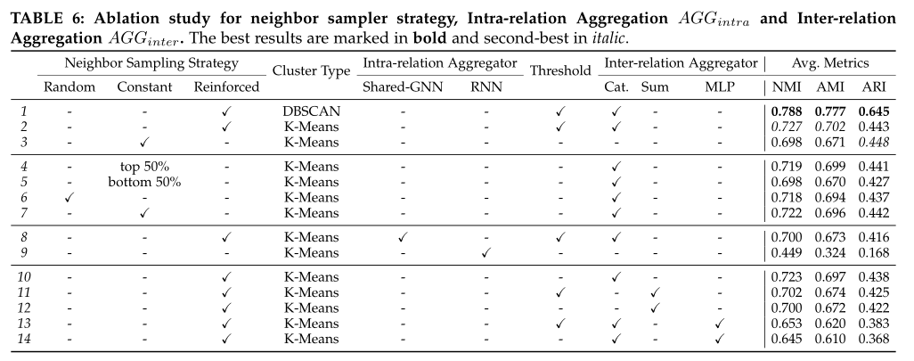 由于增强聚合的目标是寻找最佳的聚合方案,以获得消息的最佳聚类性能,因此我们使用归一化互信息(NMI)作为奖励函数,客观地衡量聚类效果。并定义纪元k中关系r下的奖励 ,定义为: